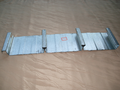 第二步:要看整個樓板的厚度來考慮選擇是用75波高系列的還是51波高系列的,閉口有波高40(42)系列,50波高系列,65波高系列。一般來說波高越低,承載力就越低,然后就是波峰間距越大,承載力就越小,如果整個樓板厚度在10公分以內(nèi),選用選用波高40(42)系列,,整個樓板厚度在10-13公分以內(nèi)50波高系列,在13公分以上選用75系列。有些人會問,為什么呀?其實(shí)中國鋼筋混凝土建筑規(guī)范里有個要求,鋼筋上面的混泥土保護(hù)層不能低于2.5cmm,就是說樓承板本身的波高+鋼筋網(wǎng)的厚度(一般2cm)+2.5cm的保護(hù)層≤樓板的厚度。